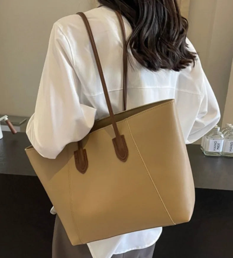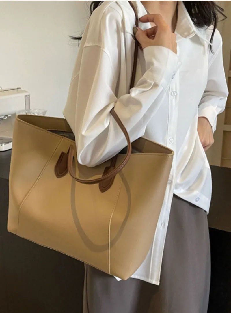 Bolso de cuero sintético de hombro. Con cierre de zipper y bolsillos internos.